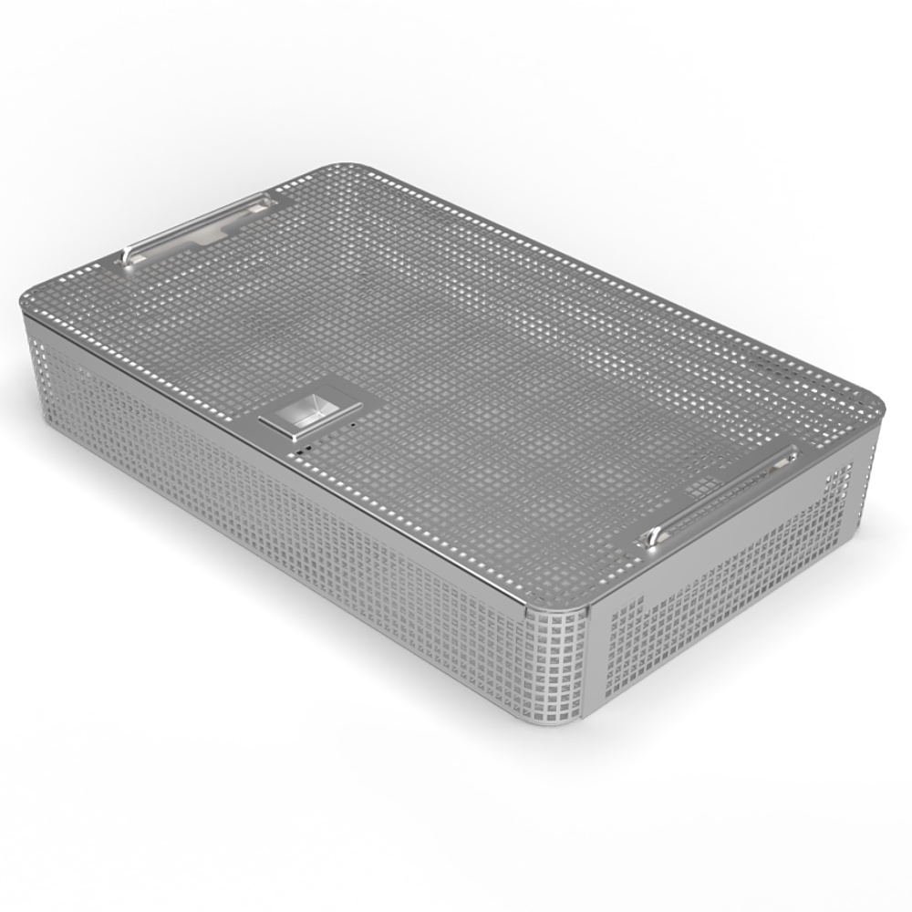 Стерилизационная корзина среднего размера с крышкой используется для группирования, очистки и транспортировки ручных хирургических инструментов и оборудования в стерилизационных контейнерах. По обеим сторонам корзин металлические ручки, которые удобно держать и поднимать. У него есть крышка для защиты материалов в корзине. Ширина, длина и высота корзин подходят для емкостей, в которых они используются. Они не подходят только для стерилизации паром. Процесс паровой стерилизации можно применить, обернув тканью (зеленой тканью).